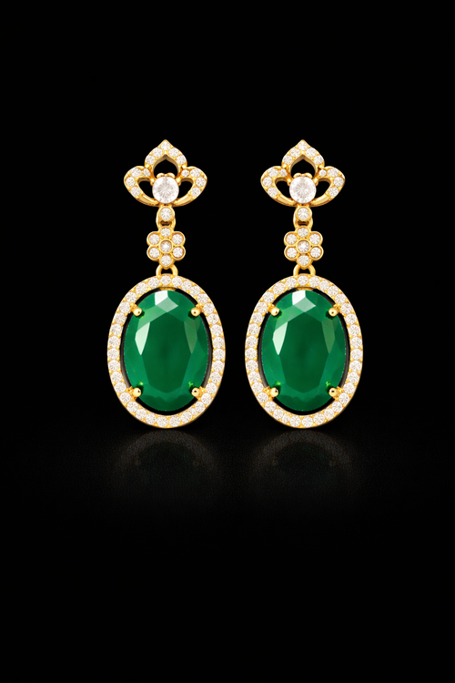 Elegant Party Wear Jewellery | Gold Plated Oval Green Stone Drop Earrings for Women
